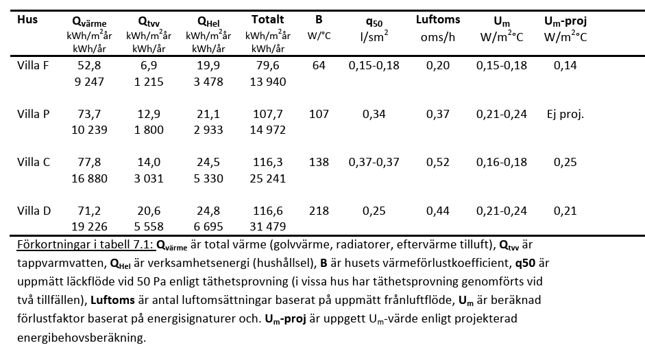 Denne rapporten viser huset (Villa Falk - isolert med Celleglass) som med minst luftlekkasje også har det laveste spesifikke varmeforbruket.